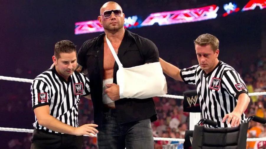 The first big setback came in a 2003, shortly after Big Dave was given a prime spot in Evolution. He (along with Randy Orton and Bubba Dudley) got crocked in a house show tag match. Adding injury to injury, the triceps tear was made worse while Batista was preparing for his comeback, ultimately sidelining him for most of the year.