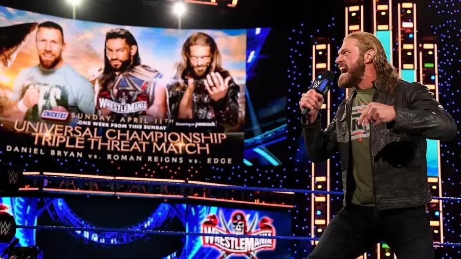 10 years after he was forced to retire from professional wrestling, Edge will main event WrestleMania 37 alongside Roman Reigns and Daniel Bryan in a Triple Threat Match for the Universal Championship.