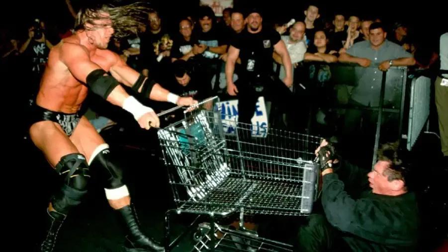 After Triple H married his unconscious daughter Stephanie, Mr. McMahon was, shall we say, a little bit miffed and vowed revenge on The Game.