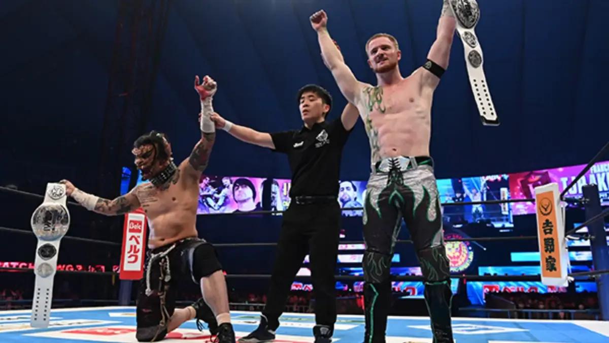 The match went nine minutes and 38 seconds before Aswang TJP bit Drilla Moloney and sprayed him with mist. Catch 22 then followed up with Double Knees to become three-time IWGP Junior Heavyweight Tag Team Champions.