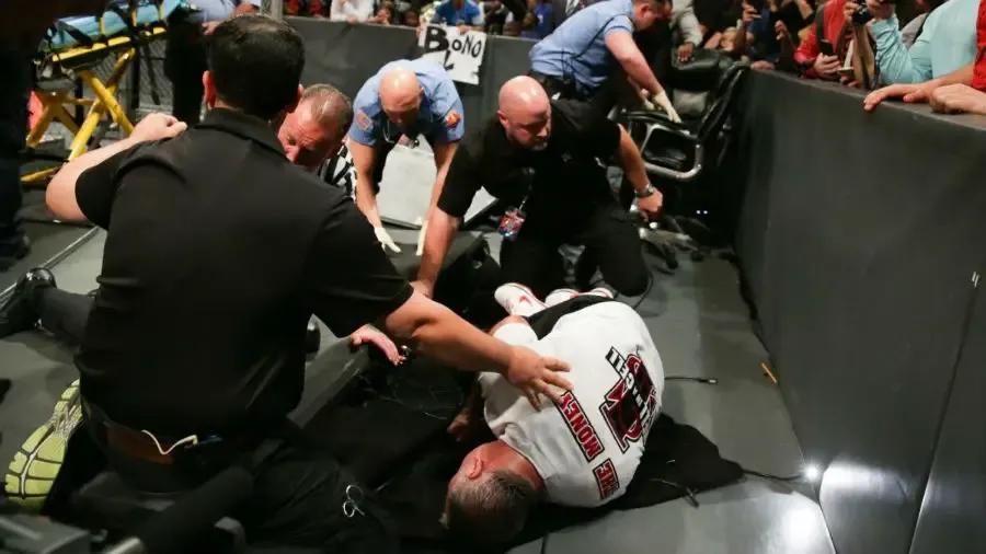 Triple H sold the terrifying nature of the bump immaculately, edging towards Foley and kicking nervously at him with an outstretched foot, before recoiling in horror and disbelief as his opponent stirred.